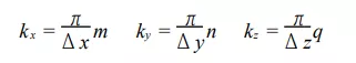 式中, m、n、q 为正整数; 而波矢 k 的三个分量为