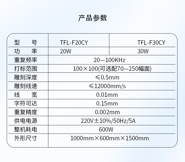 环球(中国)官方网站-登录入口激光研发TFL-F20CY激光打标机,金属材料和塑胶材料都进行打标加工,本激光镭雕机配置成熟的20W和30W国产光纤激光器,国产振镜、国产软件,性价比高,激光打标效果可达进口设备的95%,是节约成本购买设备的信赖之选!