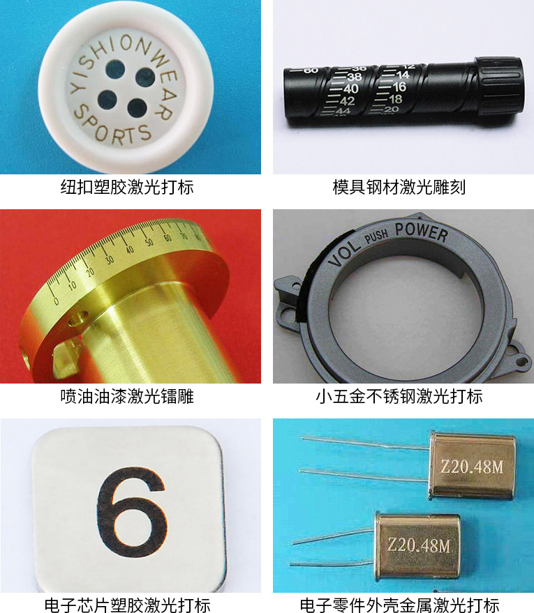 电子通讯行业:键盘塑胶激光打标、电子元器件外壳激光打标、家电面板激光打标等;