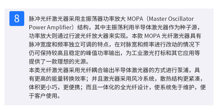 环球(中国)官方网站-登录入口激光TFL-80SW振镜激光焊接机,采用主振荡器功率放大 MOPA(Masrer Qscillator Power Amplifier)结构,实现脉冲宽度和频率独立可调的特点,在对脉宽和频率进行改动的情况下仍保持较高且稳定的峰值功率输出,适用于电池、小五金等多个行业的激光打标、激光焊接应用。