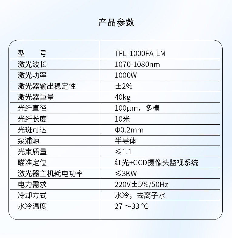 激光器主机耗电功率 |