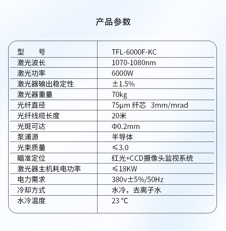 激光器主机耗电功率 |